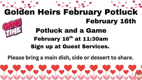 Golden Heirs is our group for those 50+. Our group meets monthly for a potluck or an afternoon trip.